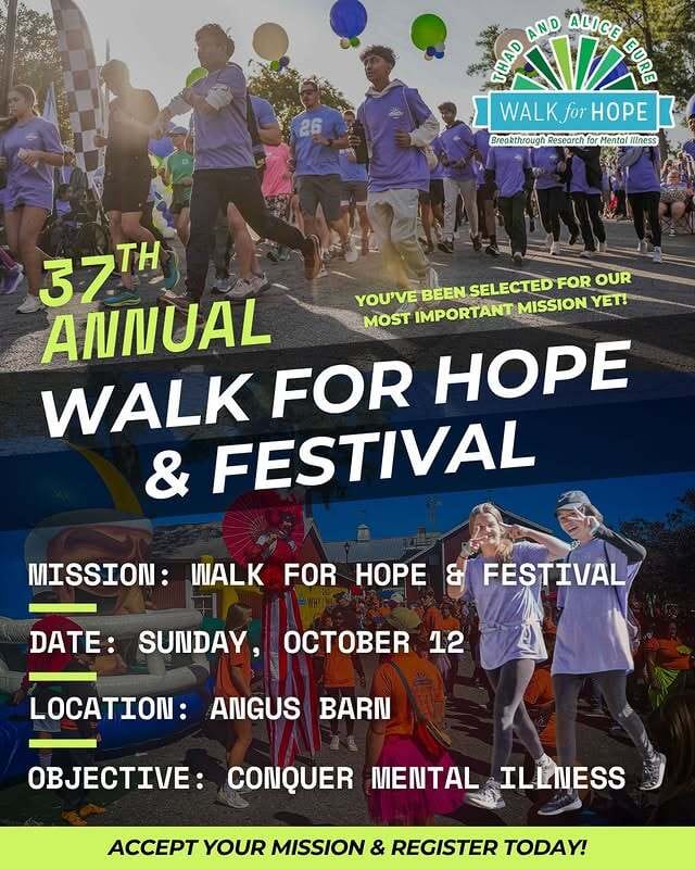 The 37th Annual Thad & Alice Eure Walk for Hope returns to the Angus Barn on Sunday, October 12, bringing thousands together to raise moneyāand hopeāfor mental illness research at UNC-Chapel Hill. Lace up for the 5K or the one-mile lake loop, then unwind with Band of Oz, great food, and family fun.